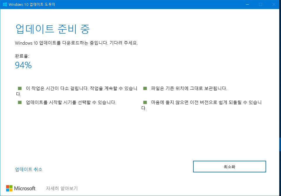5. μ λ°μ΄νΈ λꡬλ₯Ό λ€μ΄λ‘λνμ¬ (ν΄λ¦: https://www.microsoft.com/ko-kr/software-download/windows10 , νΉμ ꡬκΈμμ Download Windows 10 Media Creation Tool κ²μ) μ λ°μ΄νΈλ₯Ό μνν©λλ€.
