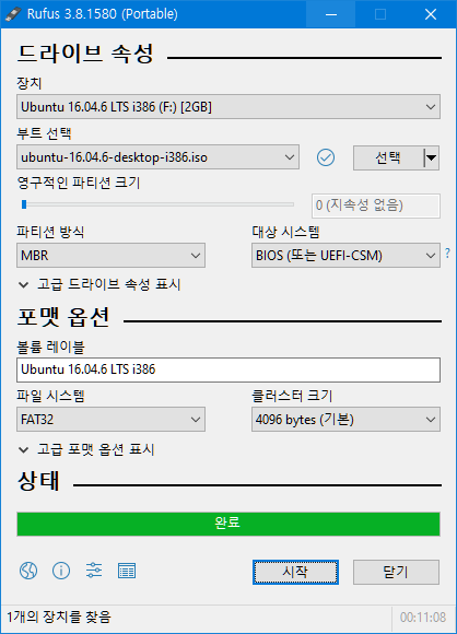 2. rufus ν΄μ μ΄μ©ν΄ 1μμ λ°μ μ΄λ―Έμ§ (*.iso) λ₯Ό λΆν